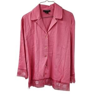 Courtenay Linen Blend Pink Long Sleeve Button Down Top Womens Size 12