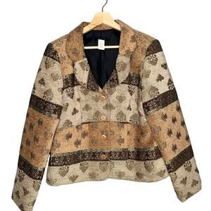 Courtenay Vintage Tapestry Blazer Paisley Embroidery Brown/Tan Size 14