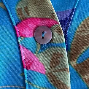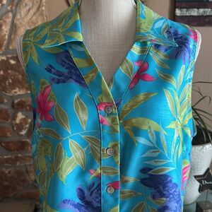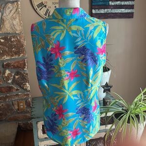 Courtenay Women’s Sleeveless Button Up Floral Hawaiian Blouse Size Large Blue