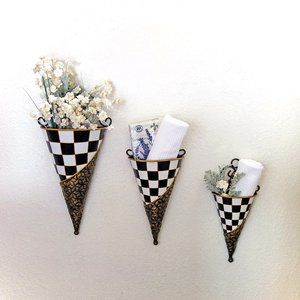 Courtly Wall Decor Wall Pockets Sconces Black White Check Planter Towel Caddy