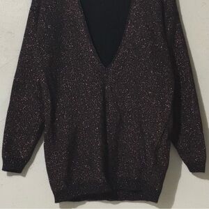 Courtney Rhodes Black Glitter Lambswool-Blend Long Sleeve Longline Sweater Vintage