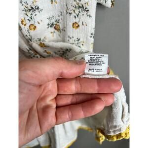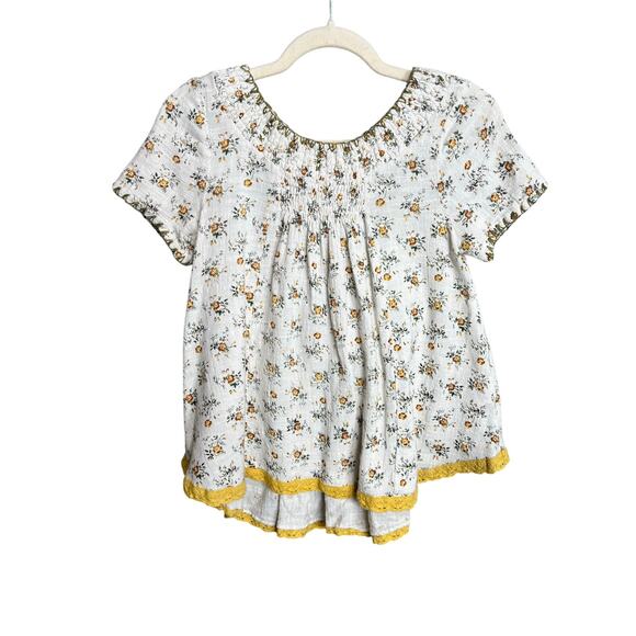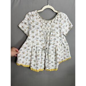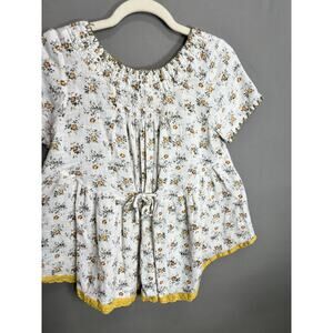 Cousin Earl Beige Yellow Floral Babydoll Peasant Top Sz XS Cottagecore Boho