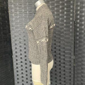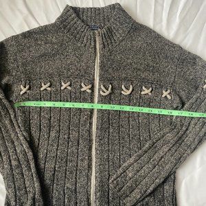 Cousin Johnny Rib knit Sweater, Zipper Closure, Criss Cross accent, gray, size S