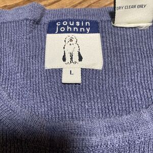 Add a touch of classic style to your wardrobe with this Cousin Johnny blue sweater. Made with a linen and cotton blend, this pullover features dolman sleeves and a collarless design. The tight-knit pattern and oversize character create a comfortable and stylish fit that is perfect for any occasion, whether it be formal or casual. The sweater is dry clean only and is available in size L. The knit style is perfect for winter, fall, and spring, making it a versatile addition to any wardrobe. The tunic accents and solid pattern add a unique touch to this sweater, which is sure to become a staple in your closet. Order now and elevate your fashion game!