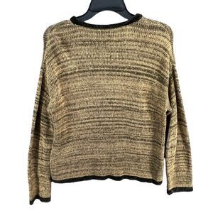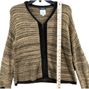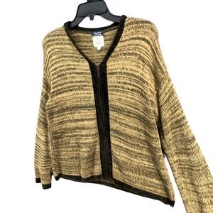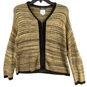 Cousin Johnny Knitted Sweater Womens Size M Tan Green Long Sleeve Zip Up V Neck