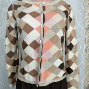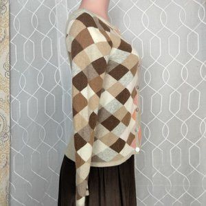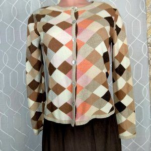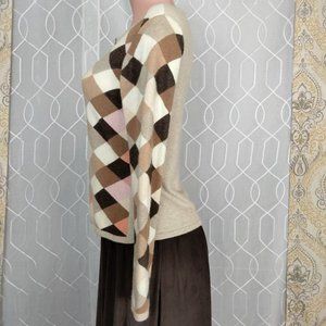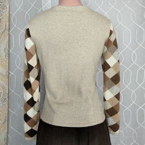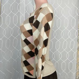 Cousin Johnny sweater Tan multi color check Cashmere blend size S