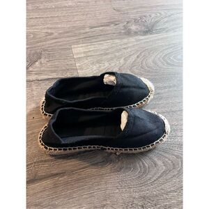 Cousu Main Kids Flat Slip On Canvas Espadrilles Black