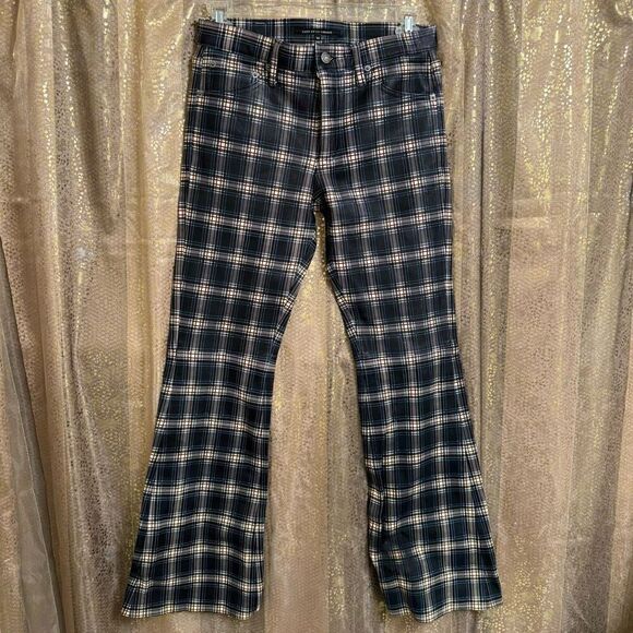 Cout De La Liberte Mens Jimmy Printed Plaid Leather Low Rise Flare Size 30 NWT