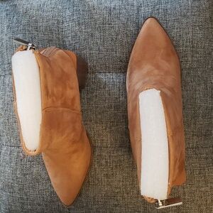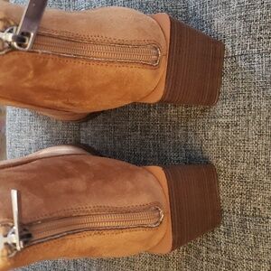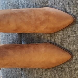 Coutgo Brown Pointed Toe Chunky Block Stacked Mid Heel Slip On Booties Size 6