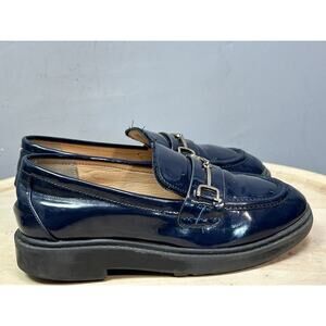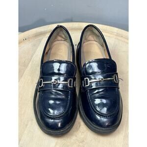 Coutgo Patent Leather Blue Loafers Girl Size 1 Chunky Shiny