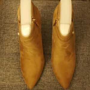 Coutgo Pointed Toe Pearl Buckle Stiletto Faux Suede Booties Rust Tan Size 8.5