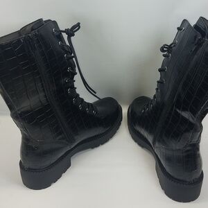Coutgo Womens Mid Calf Lace Up Boots Lug Sole Closed ToeSide Zipper Military