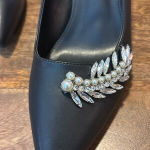 Features: Black, pointed toe, silver sparkling rhinestone and glittering pearls make the pumps elegant and stylish. Shoes witness your pure permanent love and makes you become the focus of attention and the symbol of beauty in your wedding day.