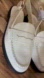 Stylish white slingback loafers featuring a gold buckle. for any occasion.