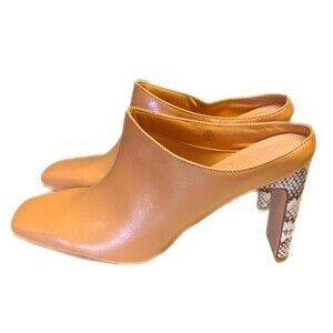 Coutgo fawn beige/caramel slip in booties with snakeskin print heel size 9
