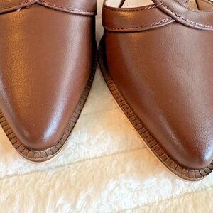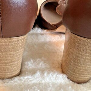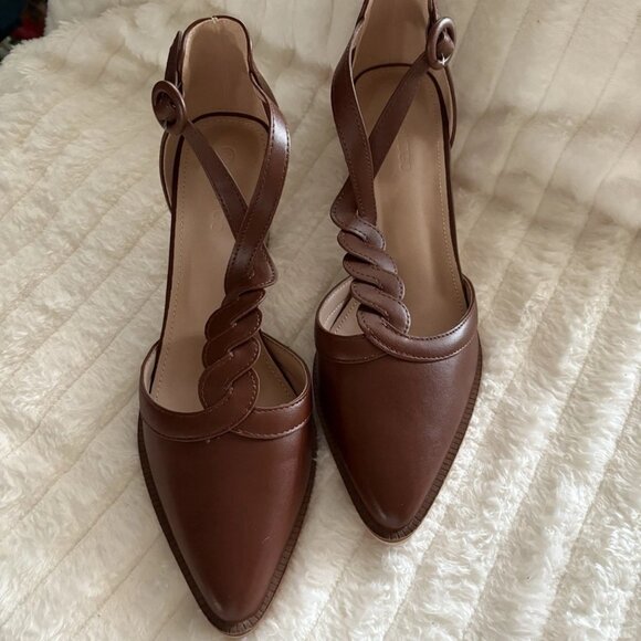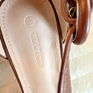 Coutgo women's Block Chunky Heels Brown T Strap Shoes