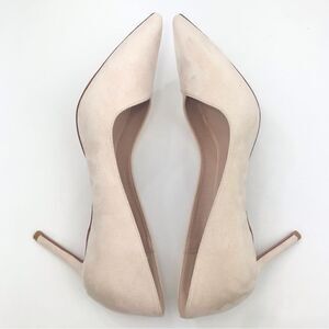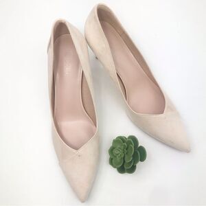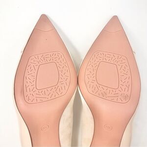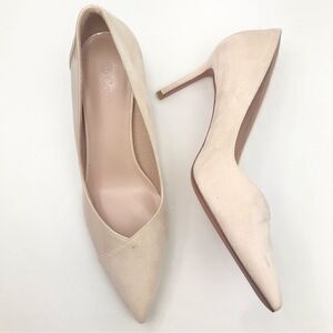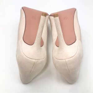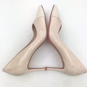 Coutgo Cream Patent Leather Faux Suede Pointed Toe Heels