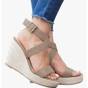 ✨Coutgo Women's Sz 8 Wedge Sandals Cross Strap Espadrille Platform✨