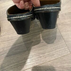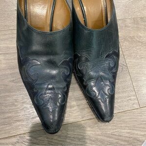 Couture Donald J Pliner Leather Mules Size 7.5. Blue and black leather mules. Perfect for jeans, skirt or dresses. The shoes did have comfort pads on the inside of the shoes and removed. See inside pictures.