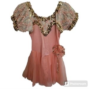 Couture Pageant Gold Peach Sequined Lace Dance Dress Size Medium Girls