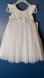 Another beautiful dress! White with just a hint of silver. Tulle, tulle, tulle! Pearls, rhinestones, satin! Fully lined with a sweet little pair of bloomers. This will look beautiful on any little girl. Very dressy for that very special occasion. Tiny flaw on front of dress (pictured) size 9 months. Length 22” from shoulder to hem; waist/chest 10”