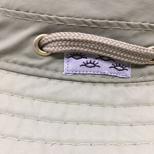 COV-VER HAT the Hat That Floats..Boating Sailing Fishing ...It Will Not Sink! So cool. In excellent used condition. Color is accurate in photos. To me it’s like a muted sage green with tan undertones. Size medium. Vented at top to keep head cool and chin strap to keep hat on. Circumference of brim is 22 1/2”. Hat is 100% nylon, and has a structured band (feels like metal or maybe a hard plastic) around exterior to keep its shape.
