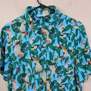 Cove Mens Short Sleeve Tropical Cockatoo Print Button Down Shirt Medium