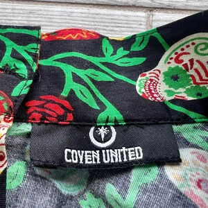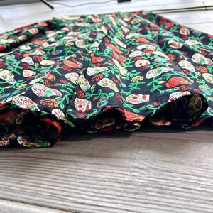 Coven United Womens Multicolor Rose And Skull Print Midi Box Pleated Skirt Small, perfect for Halloween!