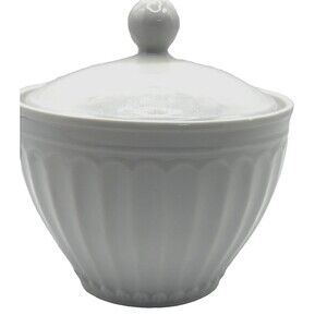 Add timeless elegance to your kitchen with this Coventry Fine Porcelain Parthenon set, featuring a covered sugar bowl with lid and a coffee mug in a classic white diamond pattern. Perfect for daily use or entertaining guests.