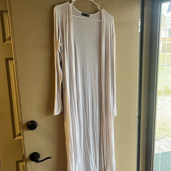 I used this as a light sweater for my dresses in the summer. This is almost floor length and I am 5’8. Super lightweight and perfect for an outfit!