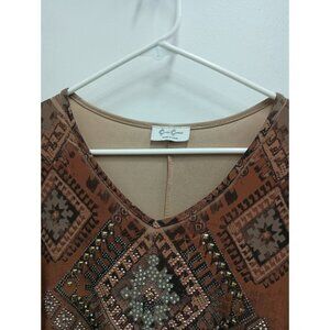 Cover Charge Wmens BOHO Western Tunic Top Medium Aztec Embellished Long Sleeve