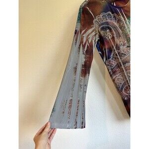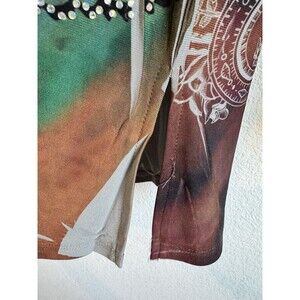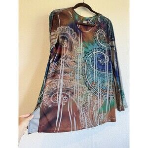 Cover Charge Women's Long Sleeve Tunic Top Colorful Artsy Rhinestone Abstract XL