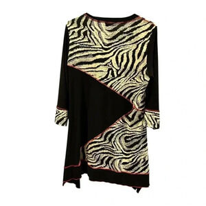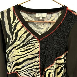 Cover Charge animal print top size M Zebra animal print patchwork with black on black lace patchwork. Red threading brings it all together. Such a beautiful stylish blouse. Pre-loved in good condition Measurements PTP: 19” + stretch Shoulder: 15” + stretch Length: 34” Sleeve: 18”