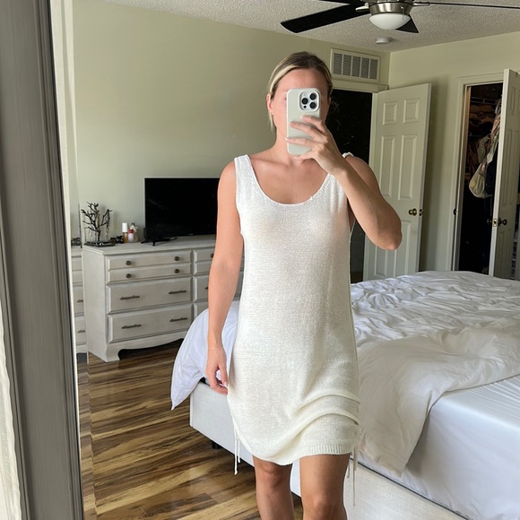 Too big on me, knit, open back, drawstring ties on both sides. NEVER BEEN WORN