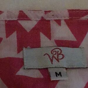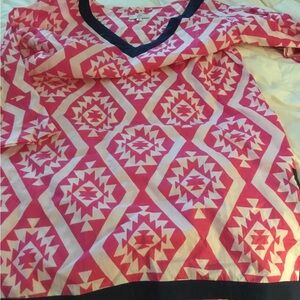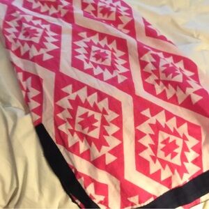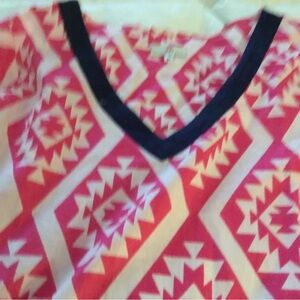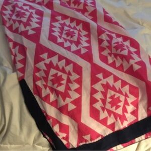Pink and white with navy trim, cover up. Slits on sides.
