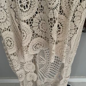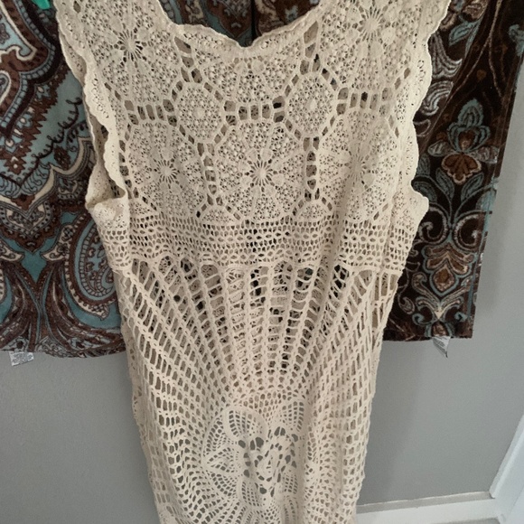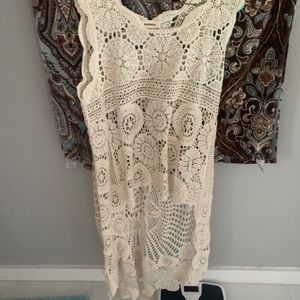Soft hand knitted cover up can be worn with jeans and more. Cream colored. Never worn.