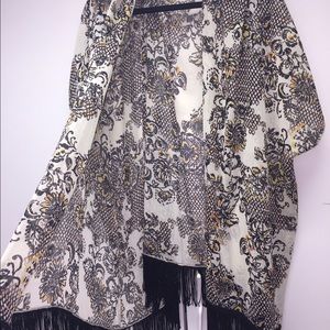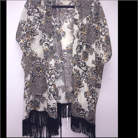 Great pattern and fringe on the bottom cover up looks great with a black one piece baithing suit!