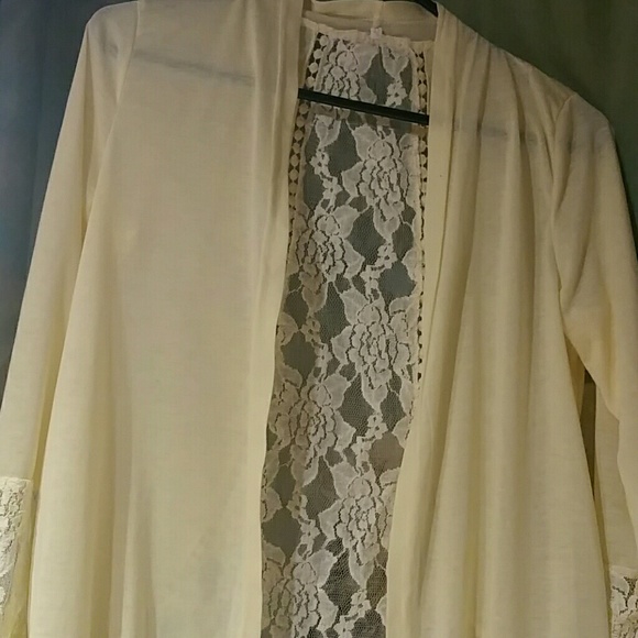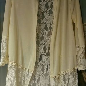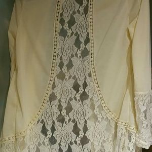 Lace cover up (yellow cream colored) soft and simple yet elegant. (Never been worn. No stains or tears)