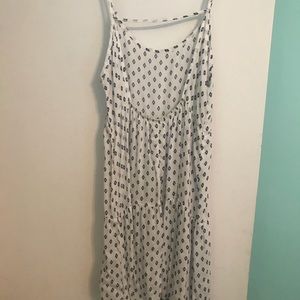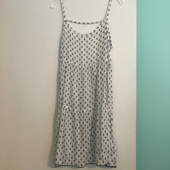 Blue diamond printed three tiered white dress with drop back worn once