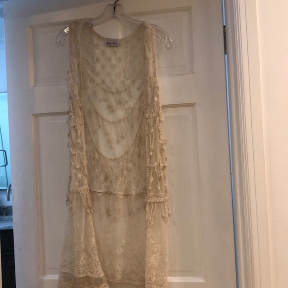 Lace cover up. This beautiful sleeveless lace cover up is one size and never been worn.