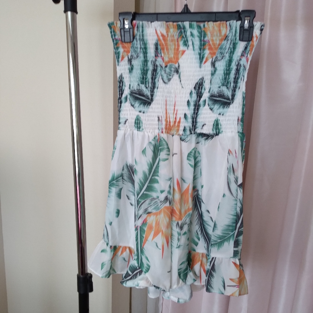Tropical print, cover up. Strapless. Wear it at your next pool party! Never been worn!