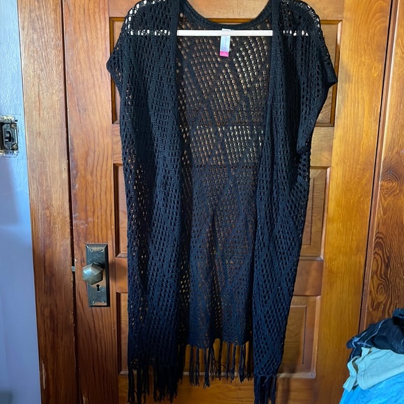 Black crocheted cover. Can wear over shirts as well.