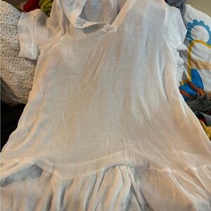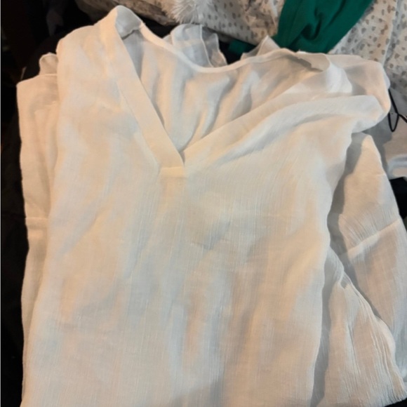 Thin white lightweight plus size coverup. I’m 5’2 and it goes past my knees. Never worn. I ended up ordering a different color. Size 3x