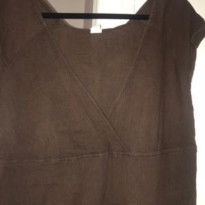 Brown crinkle lightweight material Cover-Up with crisscross neckline and empire waistline. In good condition always washed on delicate and hung up to dry from a smoke free pet friendly home.
