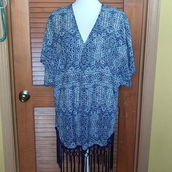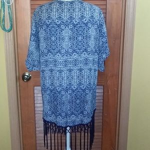 Cover up fringe blue & white 100% polyester