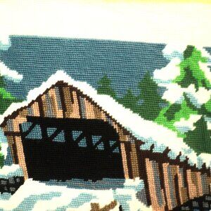 Covered Bridge Needlepoint Completed Picture T00516 Bernat Tapestria England Vtg