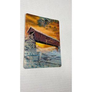 Covered Bridge Winter Nature 3-D 3D Postcard Unposted Vari-Vue 1960s Vintage