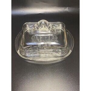 This covered butter dish is the perfect addition to your kitchen. It can hold up to 1/2 pound of butter or even serve as a cheese keeper. The clear glass material and Embossed Hillside Meadow Tree design make it a stylish choice for any home. Whether you're serving guests or just enjoying a meal with your family, this dish is sure to impress. This versatile dish can be used for a variety of purposes and is a must-have for any kitchen.