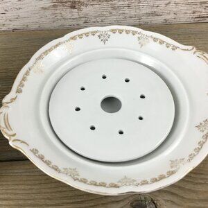 Covered Butter Dish and Strainer Victoria Austria Gold Trim Scalloped Handles