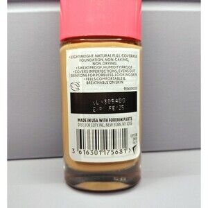 - Naturally flawless full coverage finish you crave. The lightweight, cake-free foundation has a 24-hour formula that blends seamlessly, covers imperfections, and is available in a variety of shades. Helping defend your skin against the elements, the hydrating, breathable foundation contains SPF 18 sunscreen and is sweat-, transfer-, and humidity-proof. Apply the face makeup using your fingertips, a foundation brush, or a makeup sponge